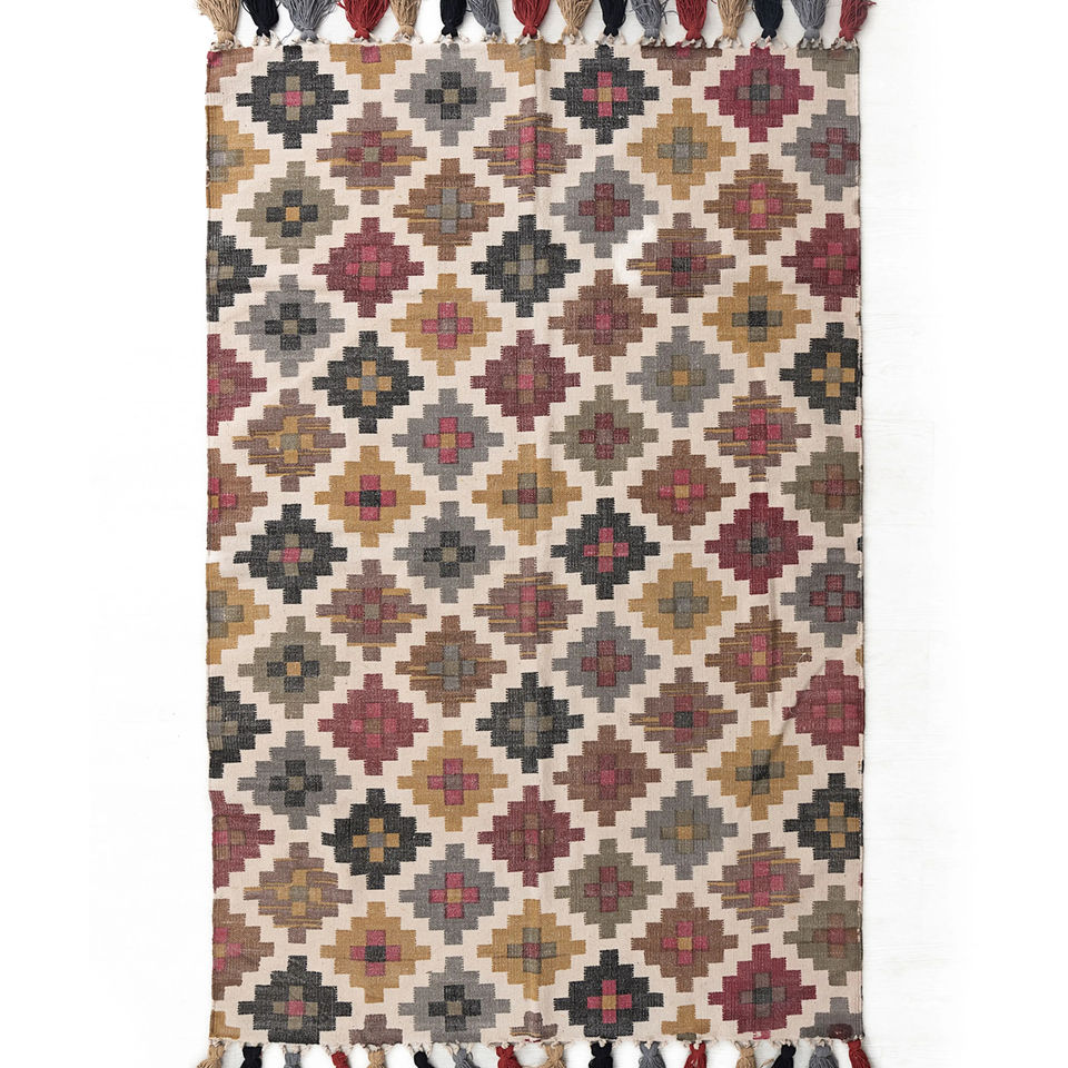 Lavable, Antidérapant, ACCEPTANT les animaux domestiques, Block-Printed Cotton Dhurry