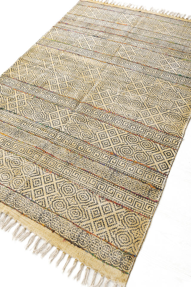 Lavable, Antidérapant, ACCEPTANT les animaux domestiques, Block-Printed Cotton Dhurry
