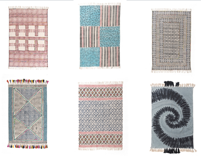 Lavable, Antidérapant, ACCEPTANT les animaux domestiques, Block-Printed Cotton Dhurry