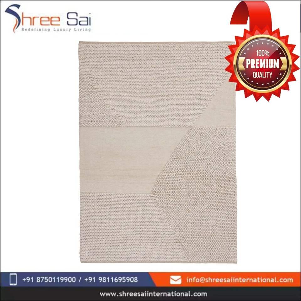 Tapis en laine et coton Dumala tissé à la main, blanc naturel ivoire, 170 x 240 cm, tapis de sol doux et durable pour la décoration du salon