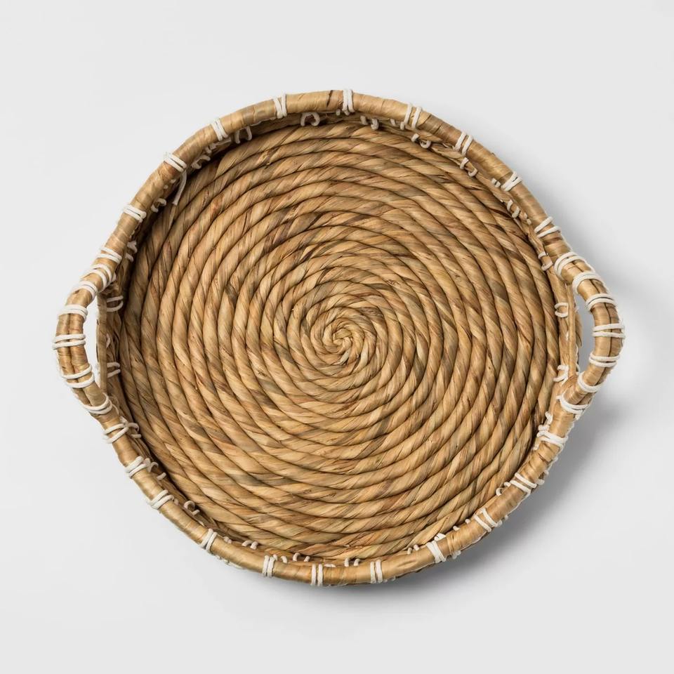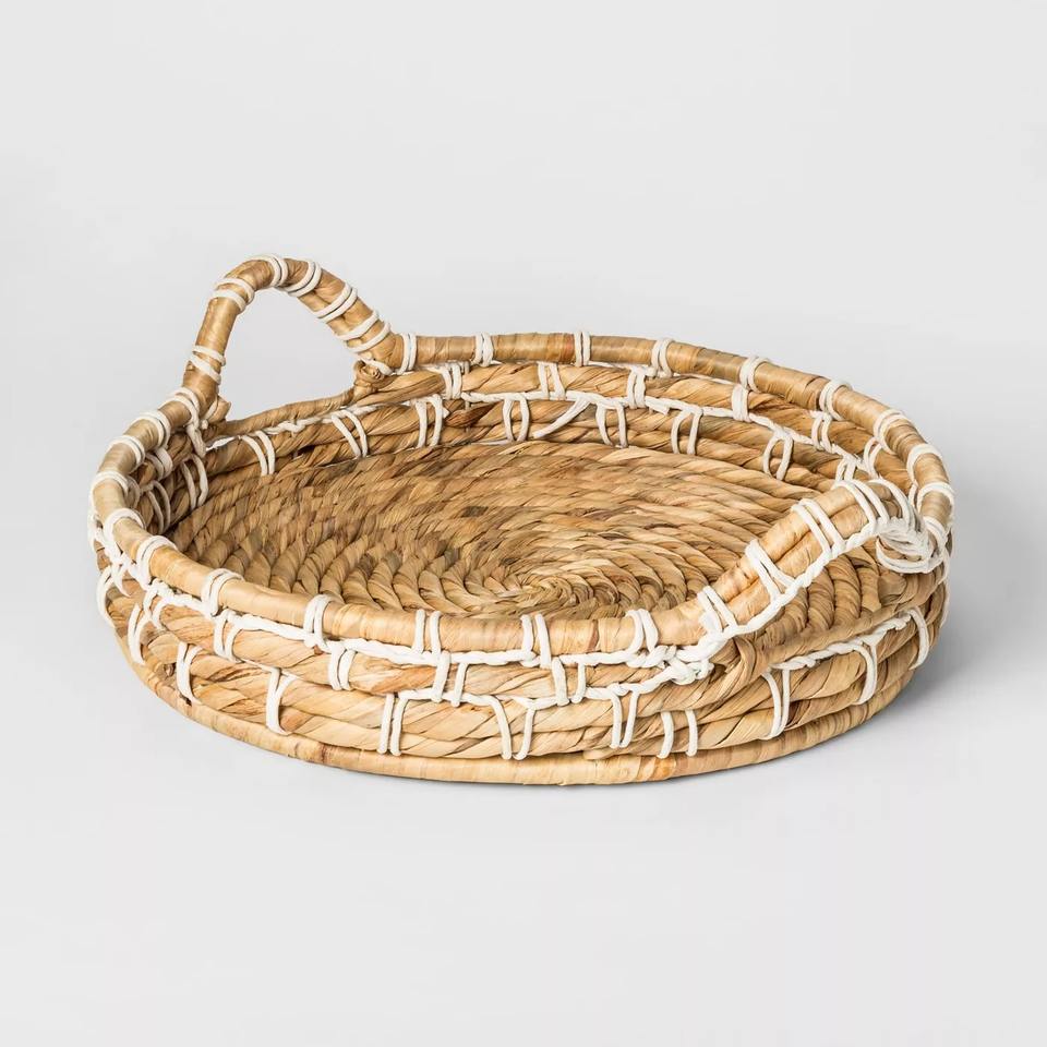 Hand-Woven Natural Water Hyacinth Seagrass Serving Trays Food and Desert Basket for Wholesales