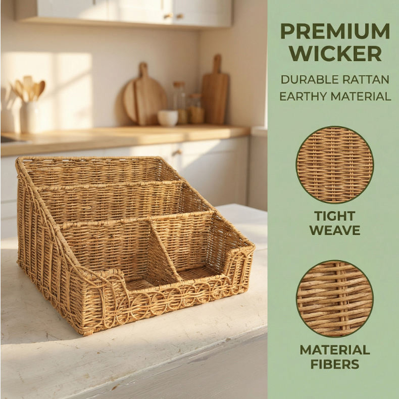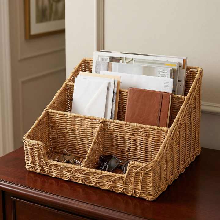 Hand-Woven Rattan Storage Basket Office Desk Storage Box Straw Basket with No Installation Required
