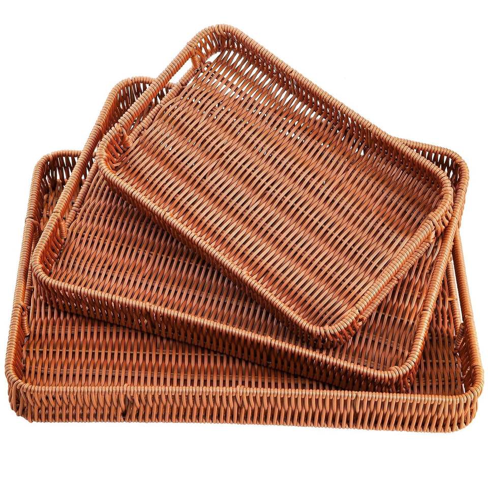 Panier de rangement tissé à la main, plateau en osier, plateau en osier tissé, plateau de service pour le dîner, plateau de service en rotin avec poignée, plateau à collation