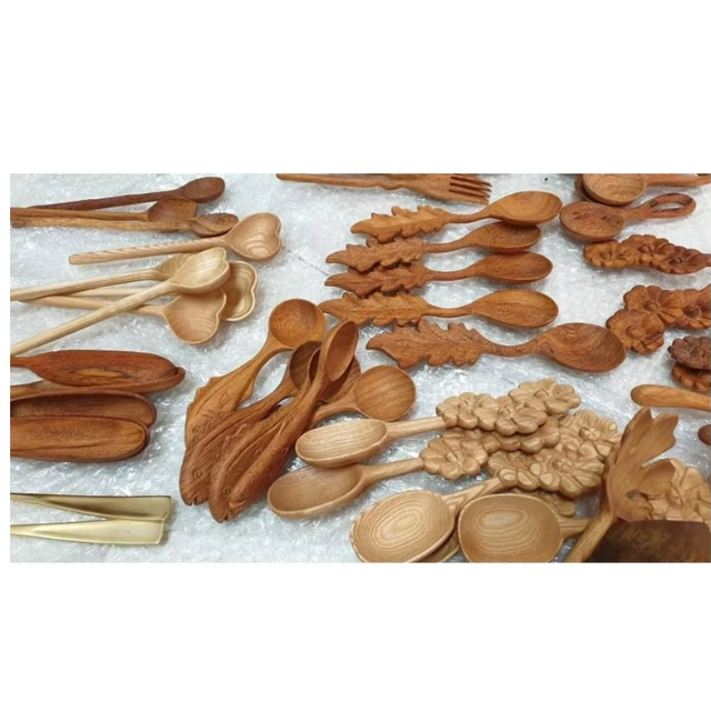 Hand-Carved 99 Gold Data Wooden Spoon with Nice Carving Handle
