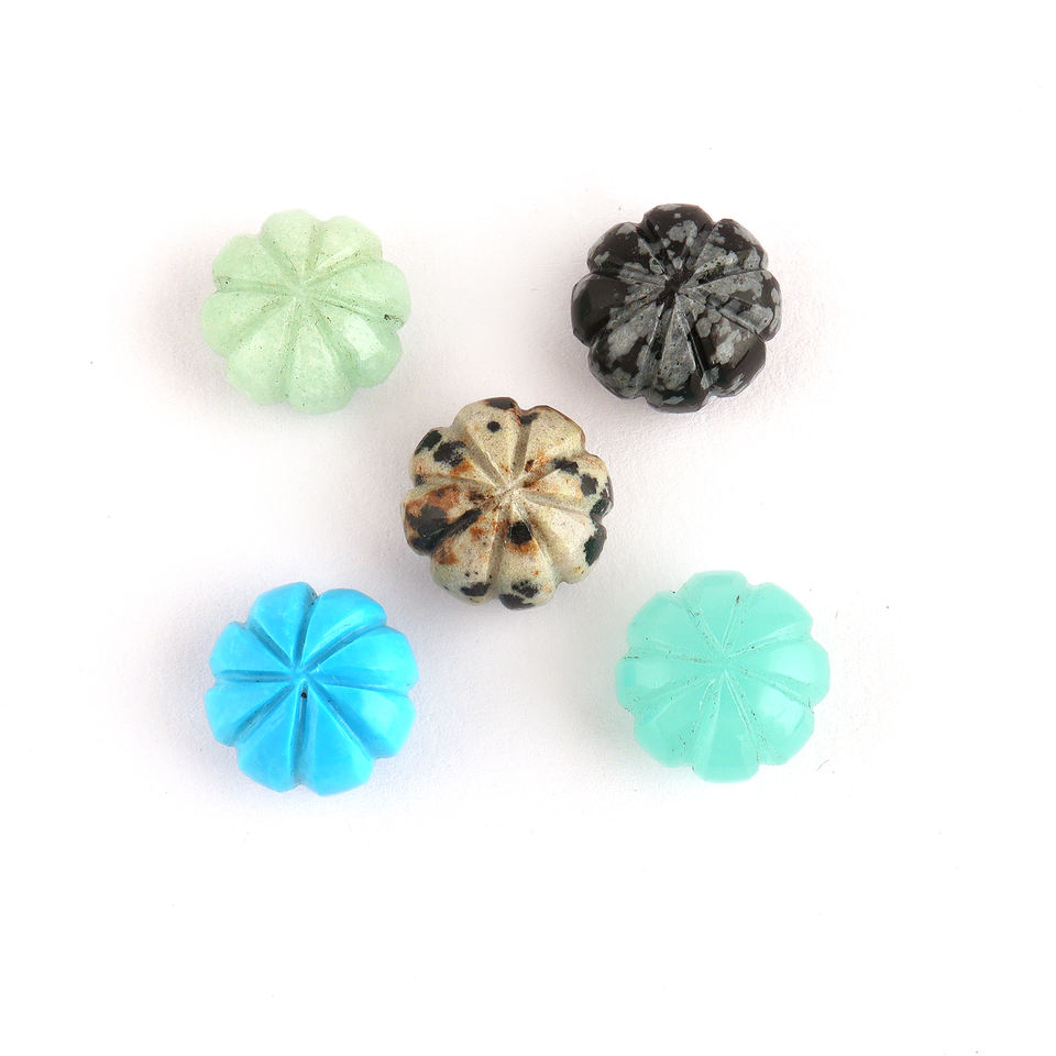 Perles de calcédoine aqua sculptées à la main en forme de melon citrouille pierres précieuses en vrac faites à la main pour la fabrication de bijoux