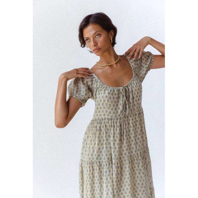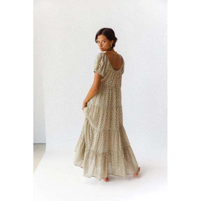 Robe maxi longue Sita en tissu imprimé à la main, fabriquée à la main, en violet, 100% coton respirant