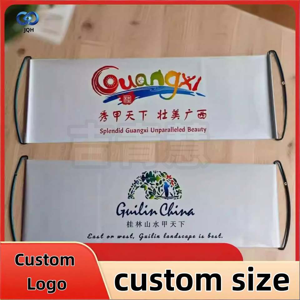 Drapeau publicitaire dessiné à la main, drapeau de promotion d'activité d'entreprise, bannière déroulante imprimée bon marché pour promotion et cadeau