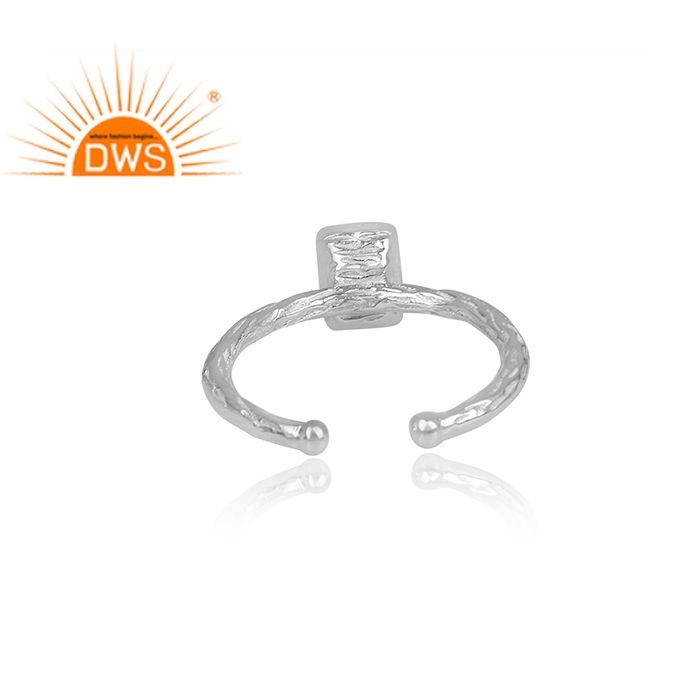 Bague en argent fin martelée à la main, accessoire de fabrication de bijoux, rectangulaire, zircon, pierres précieuses