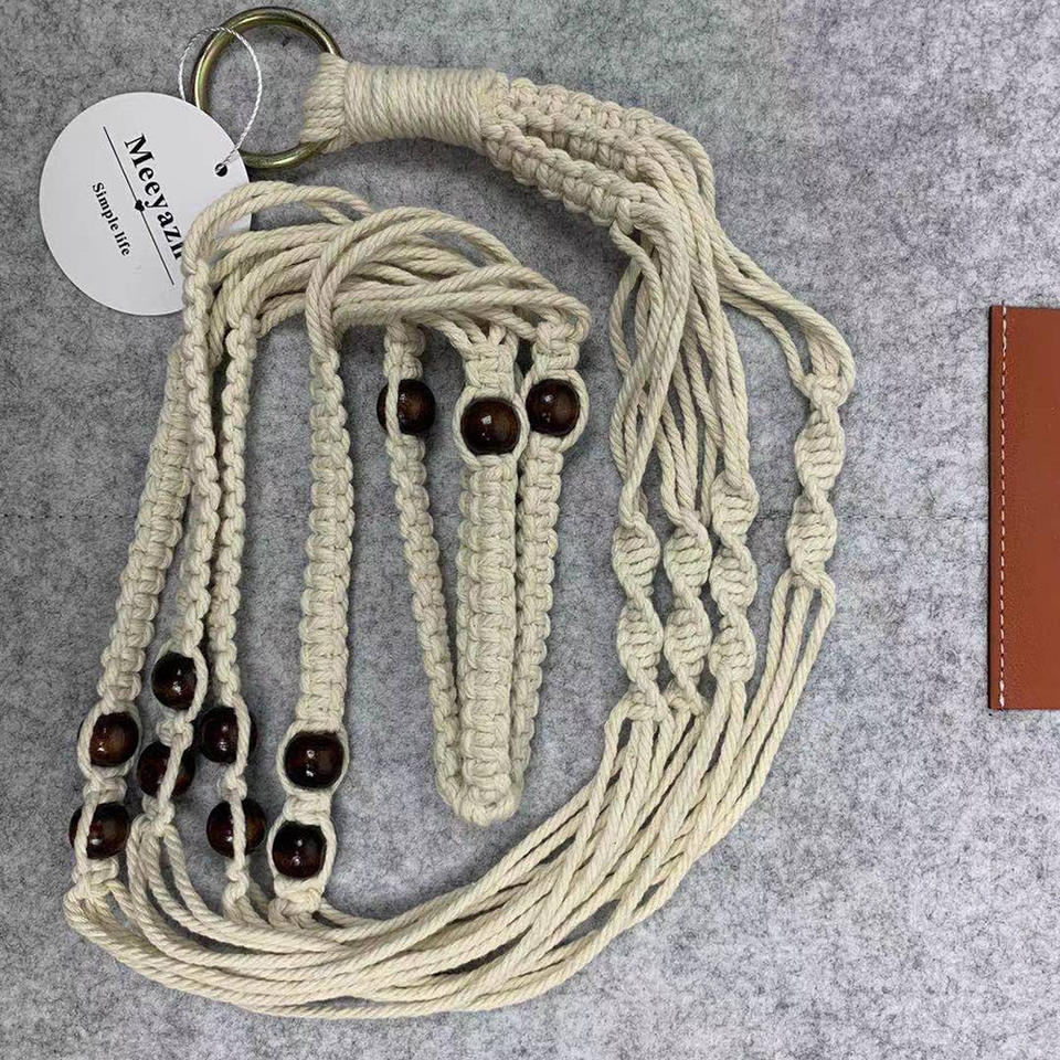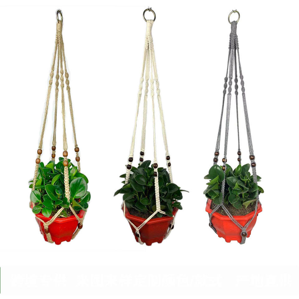 Porte-pot de fleur en corde de coton nouée à la main avec perles en bois pour la décoration de bureau à domicile