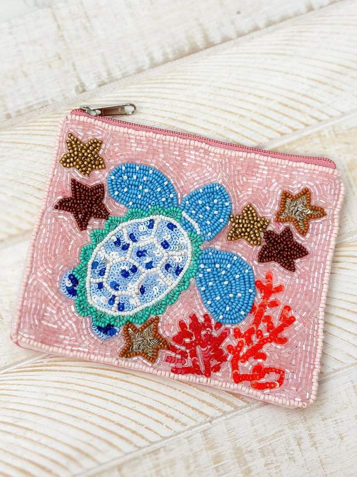 Porte-monnaie perlé fait main rose fantaisie, pochette artisanale pour Halloween, perles de rocaille multicolores, personnalisable en couleur