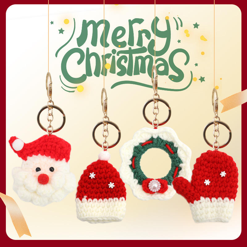 Pendentifs crochetés faits à la main Style de Noël poupée de laine tricotée sac à dos pendentifs laine tricoté chapeau de père noël