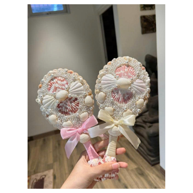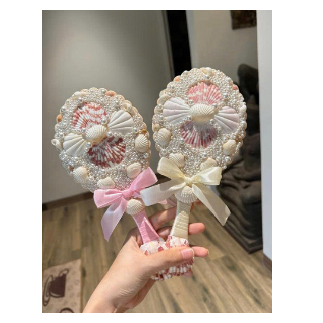 Hand mirror with beautiful seashell frame perfect for purse makeup tools coastal beauty collections and vacation souvenir sets