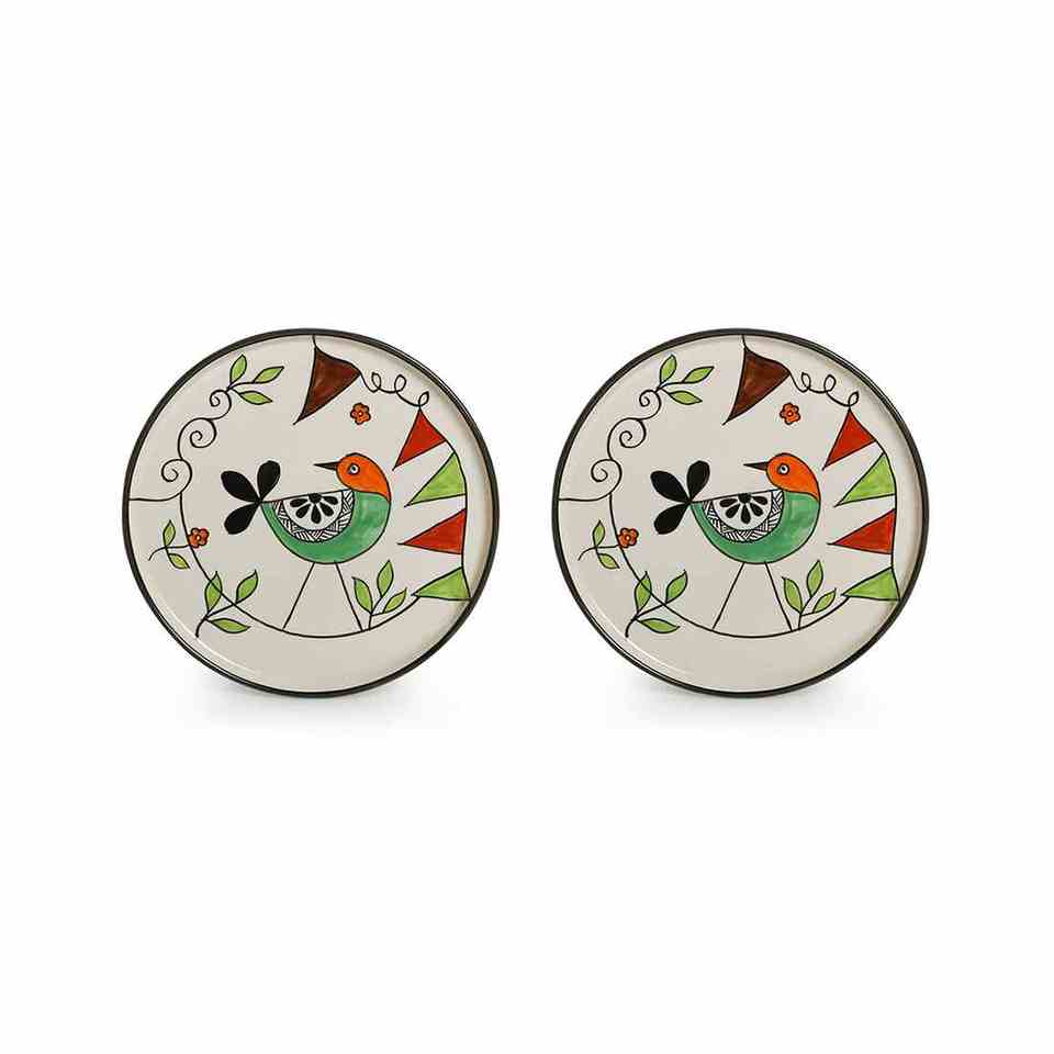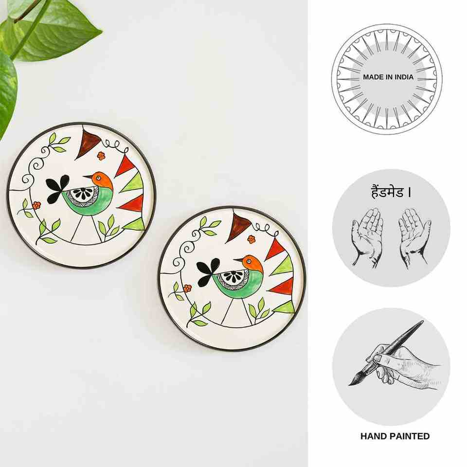 Assiettes murales en céramique peintes à la main Lot de 2 décorations murales (10 pouces)