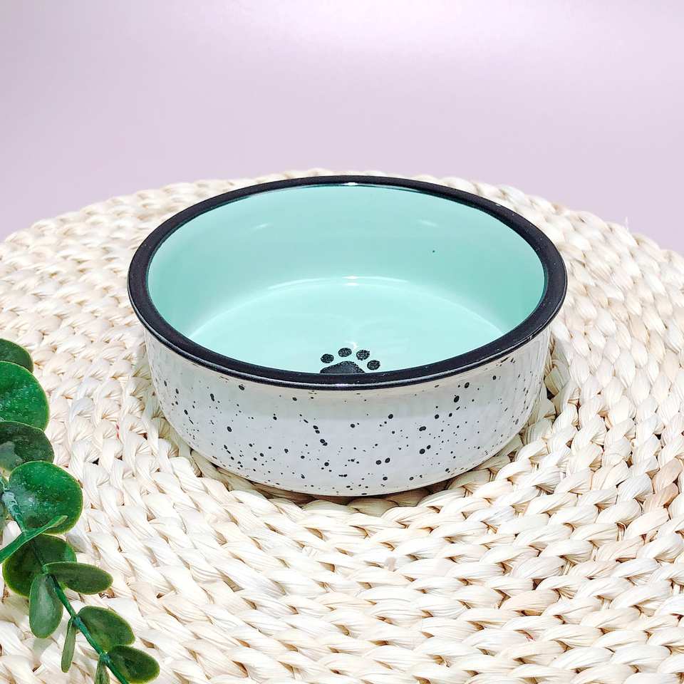 Bol en céramique peint à la main pour animaux de compagnie (chat et chien) – Protection du cou surélevée – Bol à eau et à friandises – Micro-défaut – Origine Chine