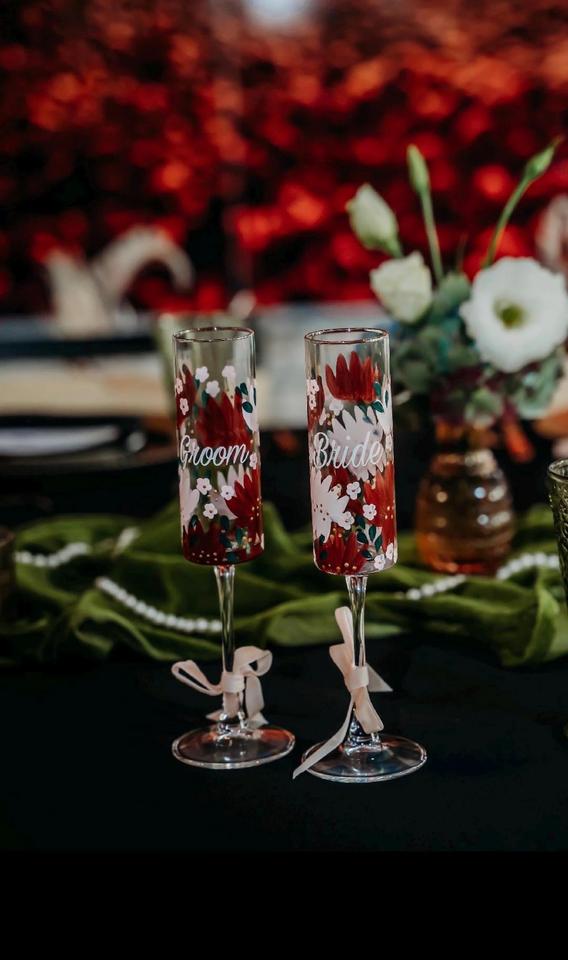 Mug en verre personnalisé avec motif floral peint à la main, noms personnalisés, isolé, compatible lave-vaisselle et micro-ondes, cadeau d'anniversaire