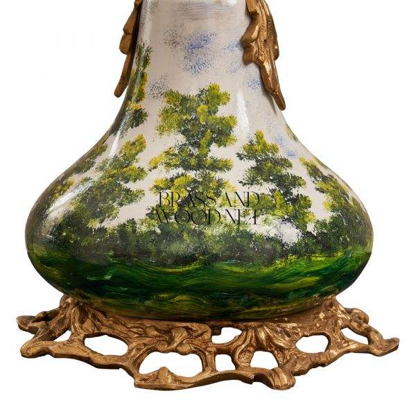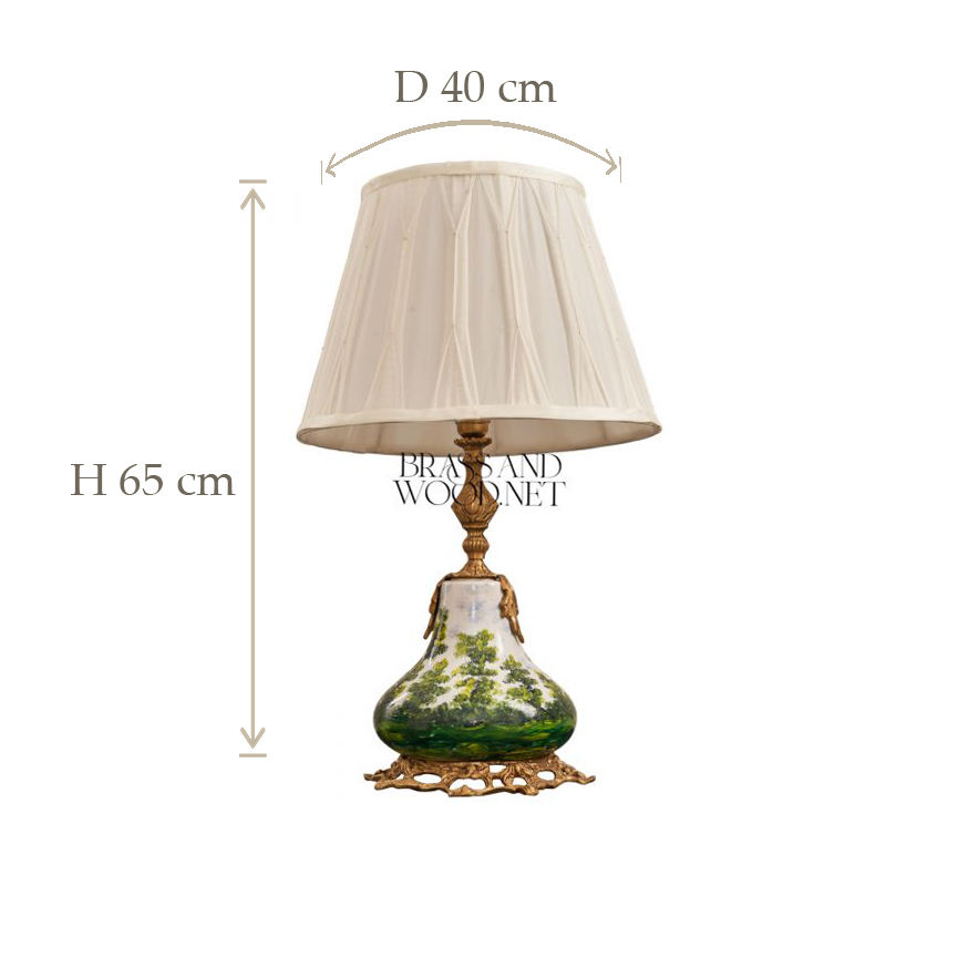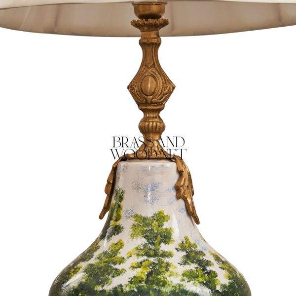 Lampe de table en céramique peinte à la main et en laiton antique avec base décorative et abat-jour en tissu élégant pour les intérieurs de luxe