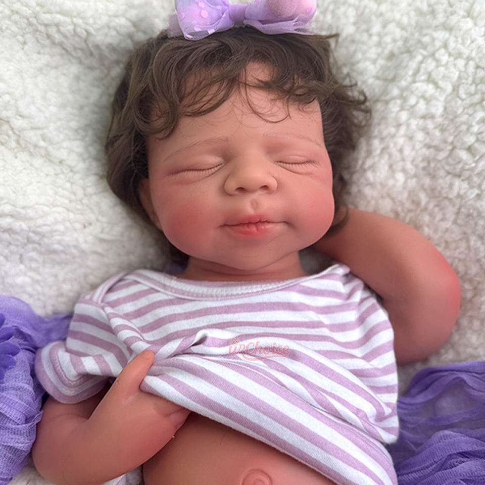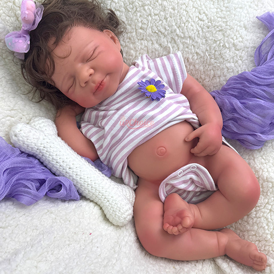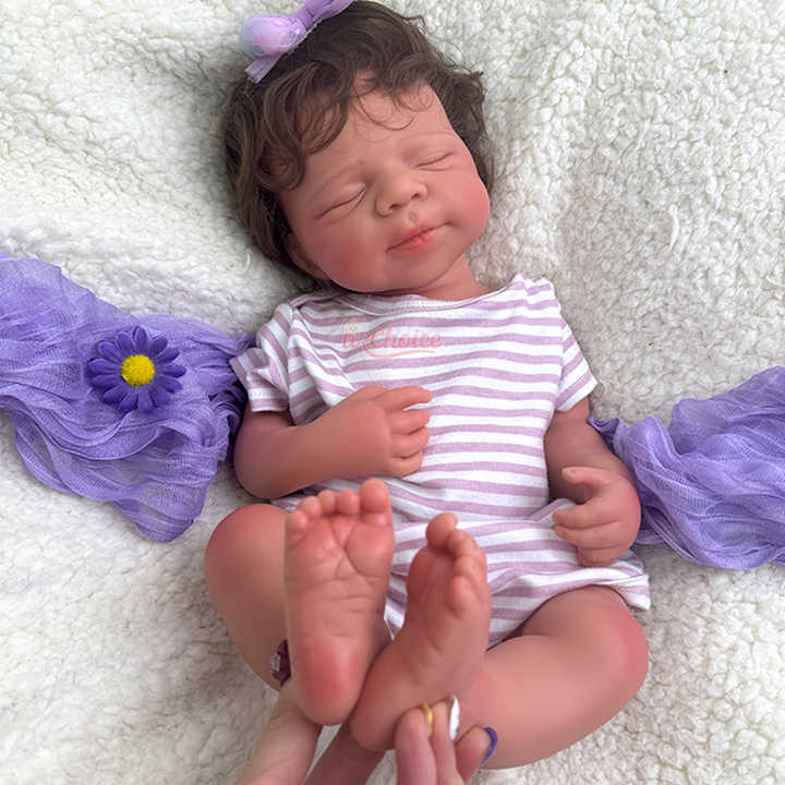 Caractéristique:Yeux fermés, ultra réaliste, peau douce, cheveux implantés à la main.