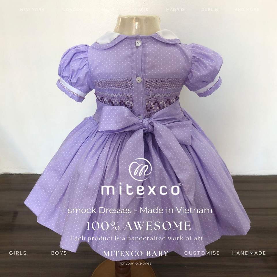 Hand smocked baby dresses from Vietnam trusted manufacturer MITEXCO low moq oem odm wholesale kids clothing