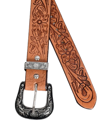 Ceinture en cuir brun à motifs western faits à la main | OEM disponible | Cuir de qualité supérieure, boucle vintage