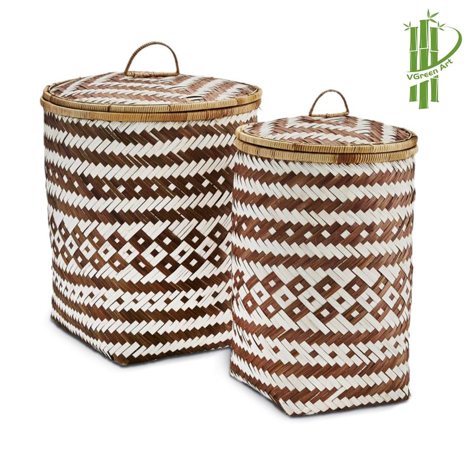 Paniers de rangement en bambou tissé à la main, panier à linge rond Caro noir et blanc, produits tendance de haute qualité, nouvel arrivage 2023