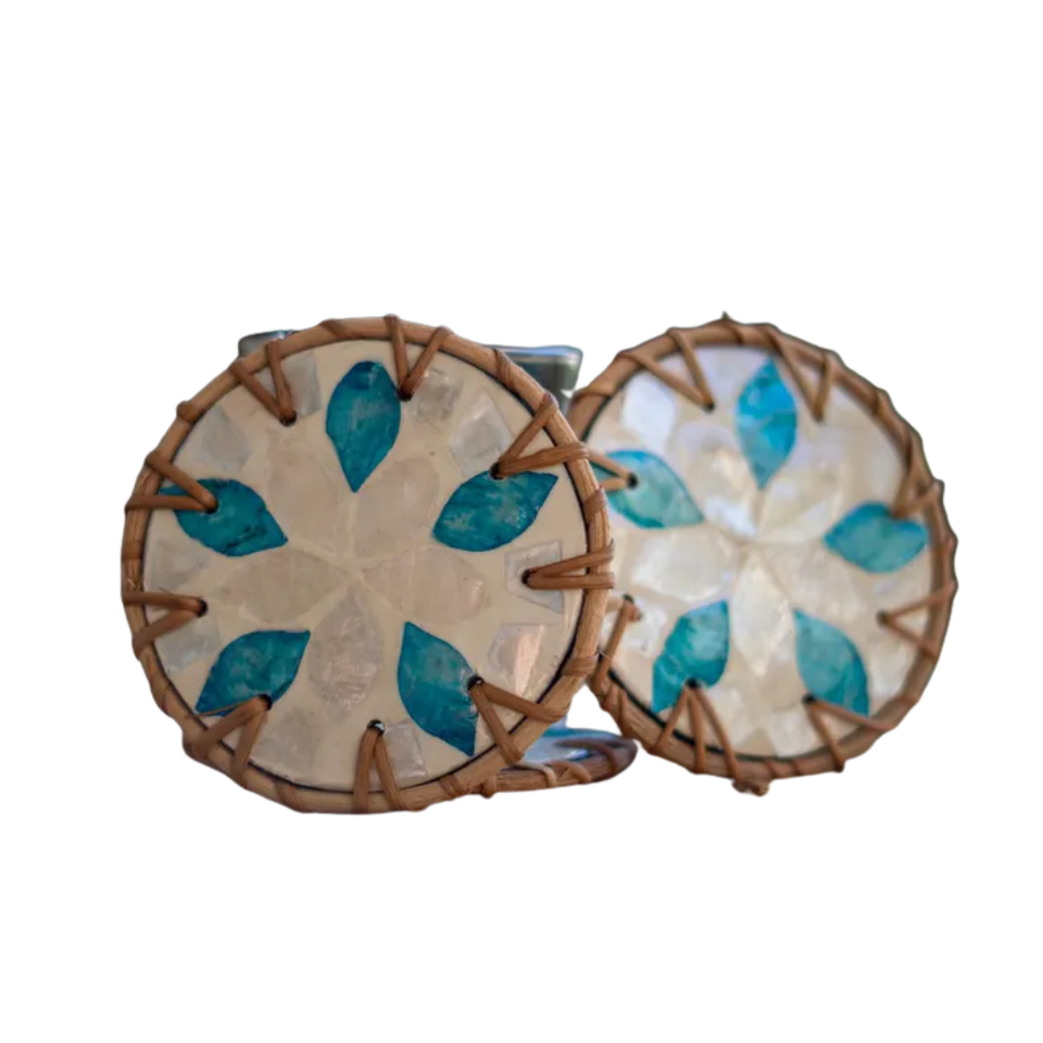 Dessous de verre en rotin tissé à la main Dessous de verre et support en céramique Osier Rotin Céramique Dessous de verre rond Vaisselle rustique Cadeau naturel fait à la main
