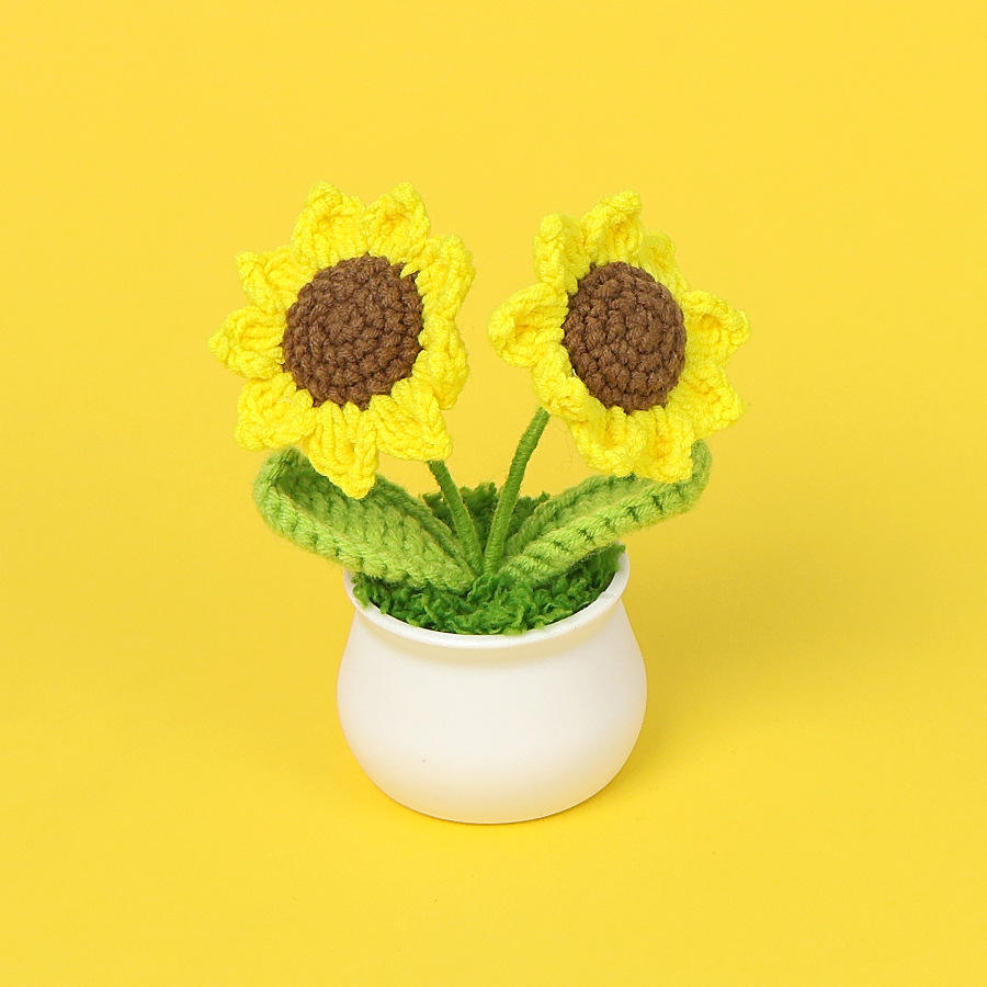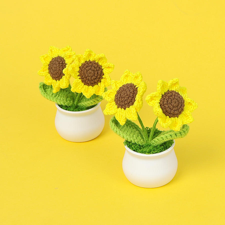 Tissé à la main deux tournesols en pot décoration de table fête des enseignants fête des enfants cadeau d'anniversaire Uionen 1494