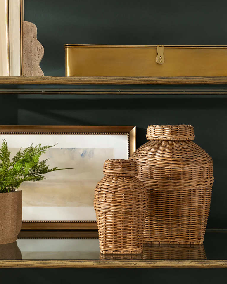 Size: L: D10,5 x H14 S: D6 x H10 inch:Hand woven decorative rattan vase
