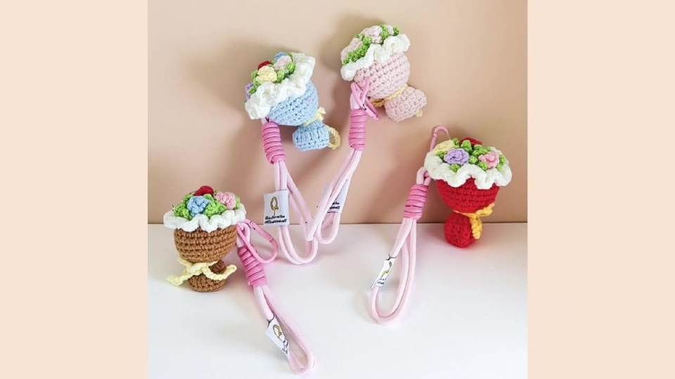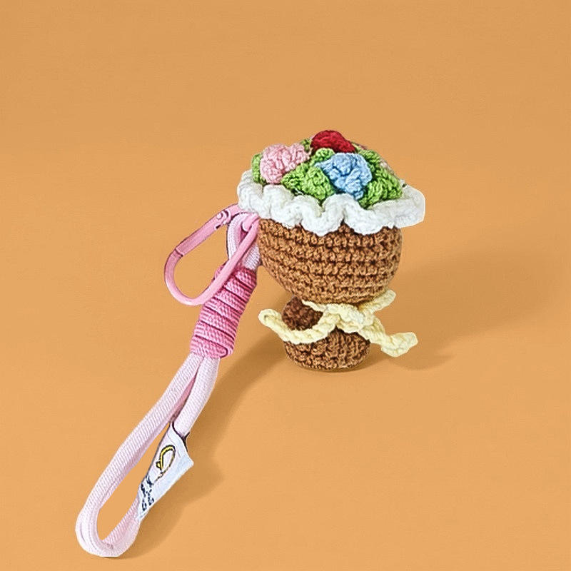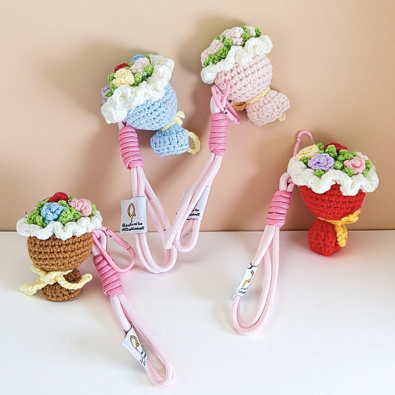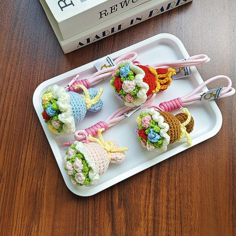 Hand-woven flower bouquets, small pendants, finished keychains, knitted woolen mini crocheted hand bouquets, graduation gifts
