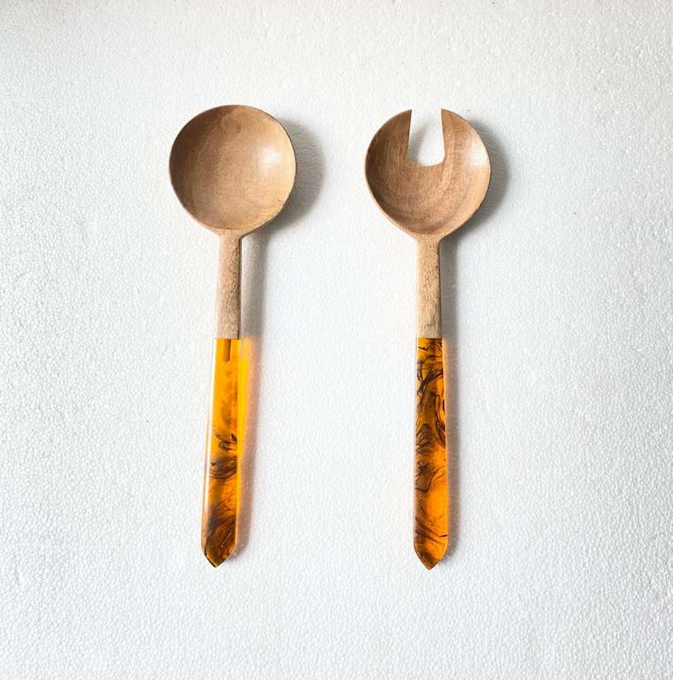 Service à salade artisanal en bois et résine, idéal pour servir la salade à la maison, dans la cuisine, lors de fêtes et d'événements, à prix très avantageux.