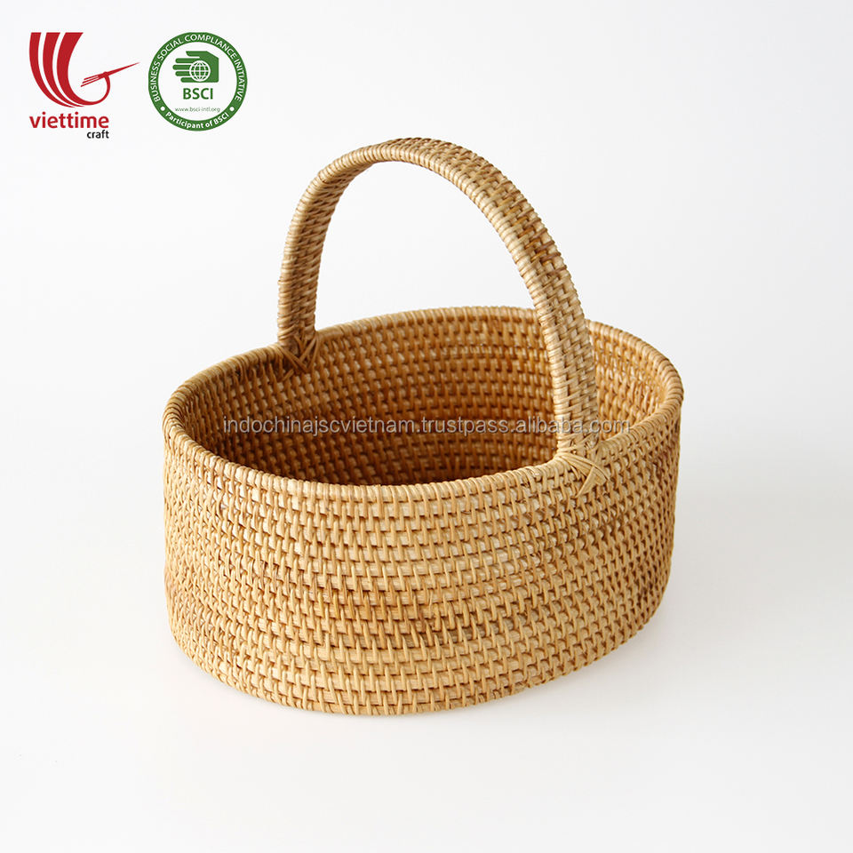 Panier de pique-nique en rotin tissé à la main, corbeille de rangement avec poignée, vente en gros