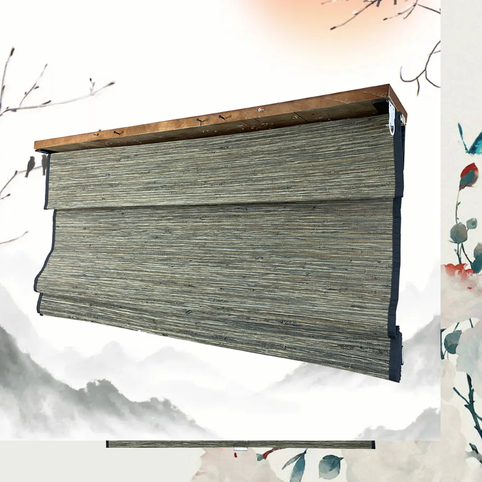 Stores occultants artisanaux motorisés intelligents avec télécommande, compatibles Alexa et Google Home, en fibre naturelle de chanvre et de jute tissée