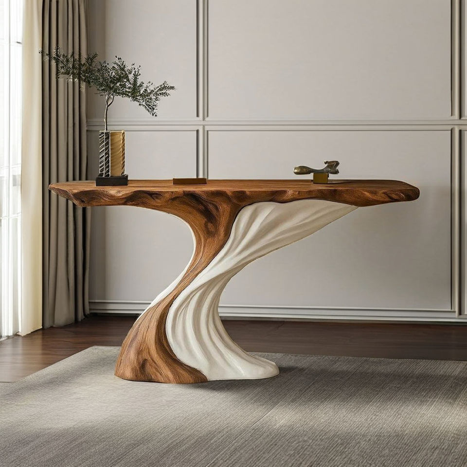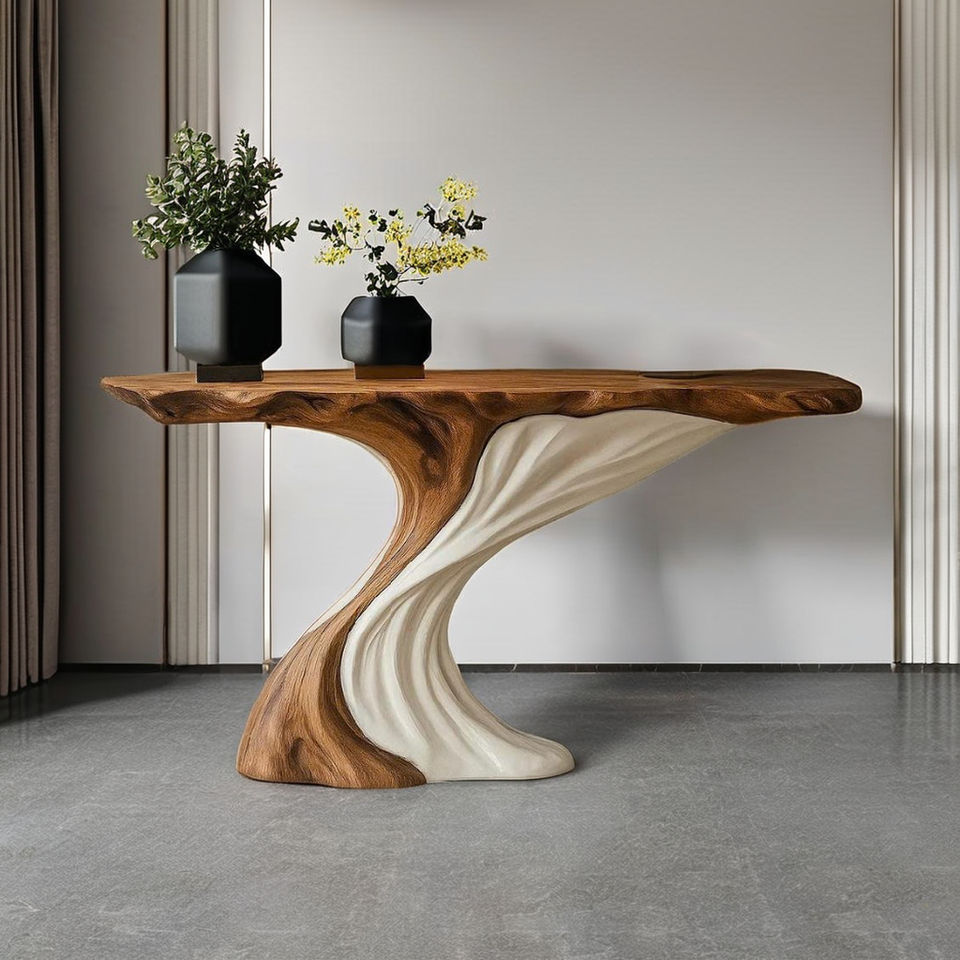 Table console vintage en bois massif véritable, table d'entrée de style campagnard, décoration de maison neuve de luxe, design unique