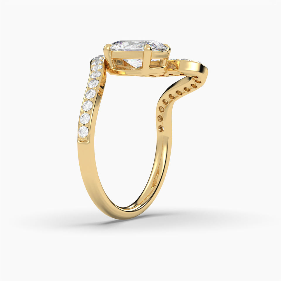 Bague en pierre de côté en diamant de laboratoire ovale de 1.35 ct fabriquée à la main avec un design unique en or 14K/18K commandes en gros