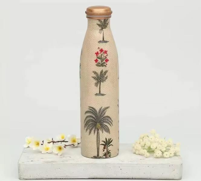 Bouteille en métal de cuivre pur 100% fabriquée à la main entièrement gravée avec couvercle pour les verres d'eau potable directe pour les adultes pour le camping