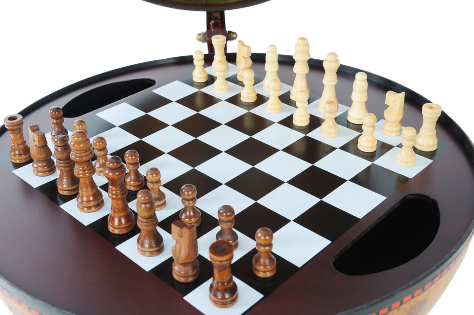 Globe en bois rouge de 13 pouces fabriqué à la main avec support d'échecs Base ronde et carte du monde de style vintage Accessoire décoratif pour bureau à domicile