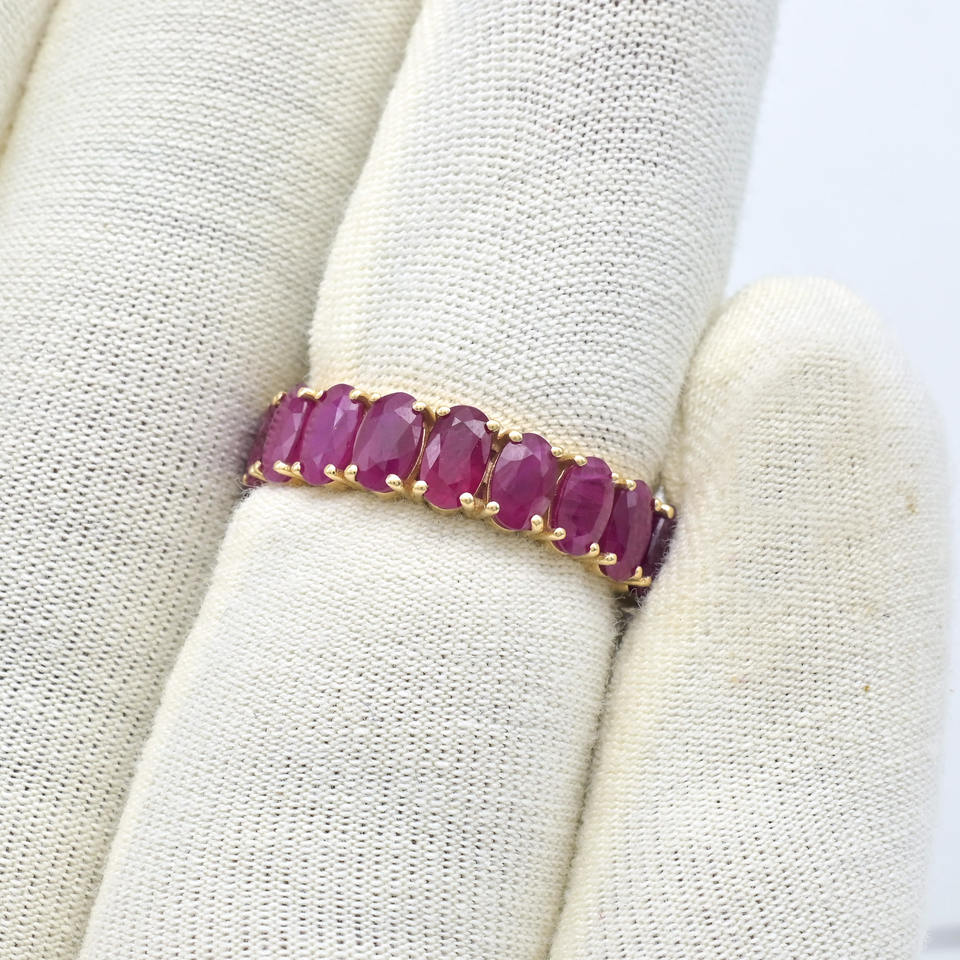 Bague de fiançailles en or jaune 14 carats avec rubis de Birmanie taille ovale de 4,2 carats, entièrement sertie, cadeau surprise pour femme, bijoux faits à la main