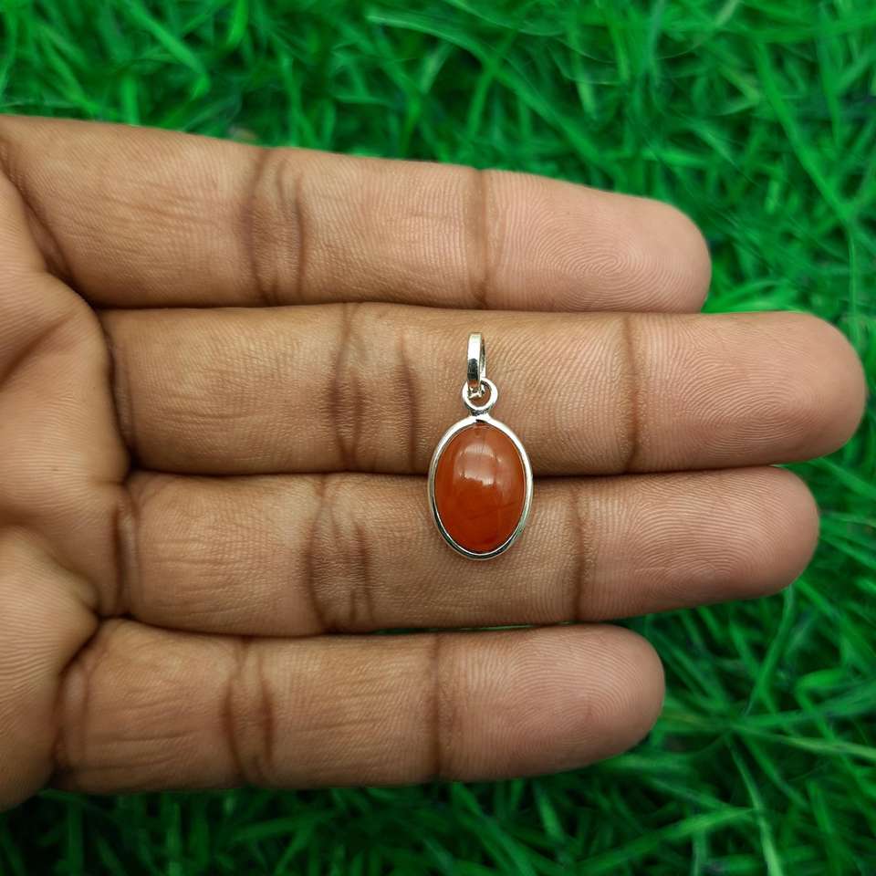 Pendentif fin en argent sterling 925 fabriqué à la main Pierre précieuse de cornaline ovale de haute qualité avec diamant à dos plat Conception de bijoux unique