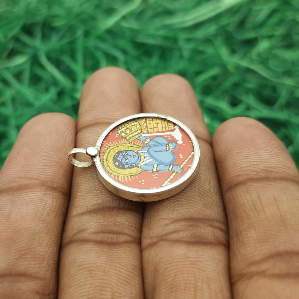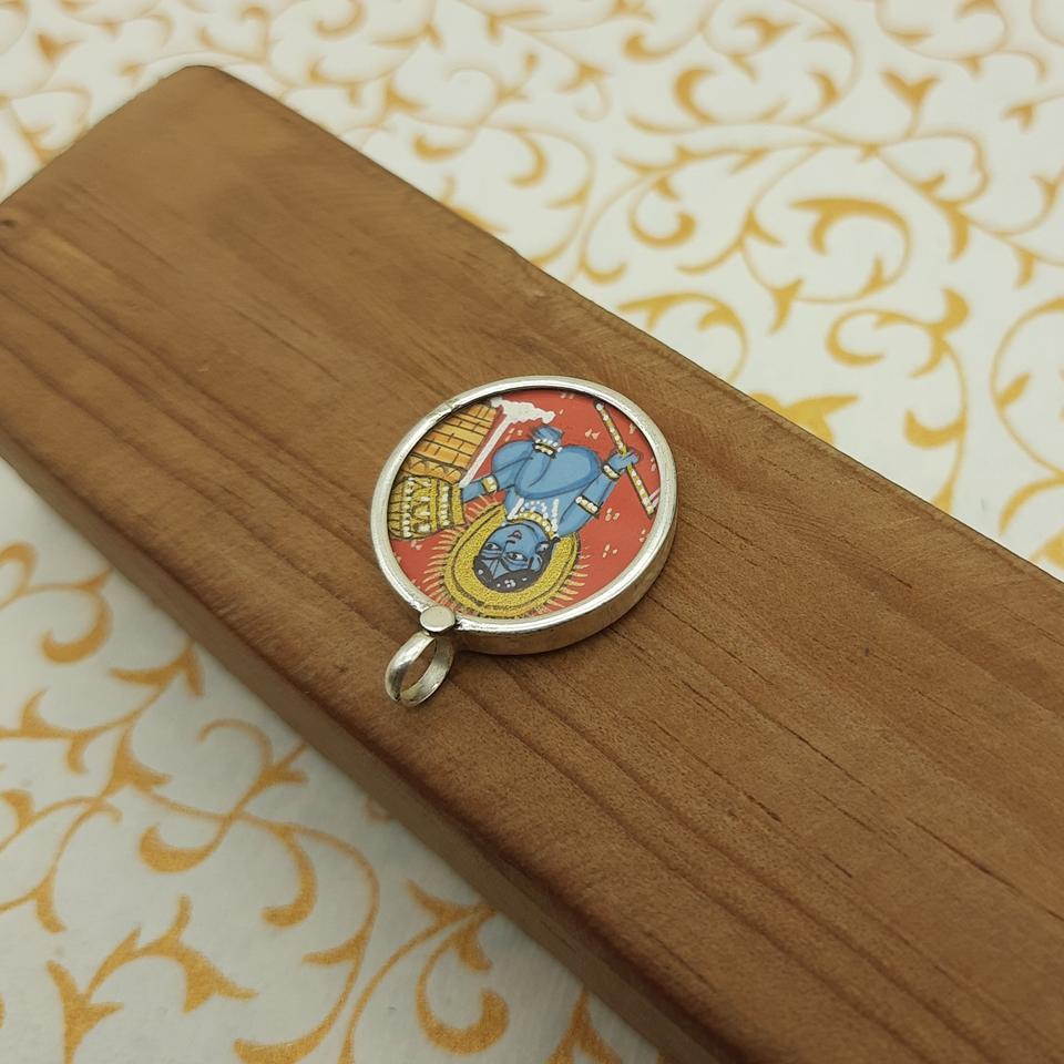 Fabriqué à la main en argent Sterling 925 Lord Krishna Artwork Pendentif Unique Spiritual Painting Glass Frames Chaînes élégantes peintes à la main
