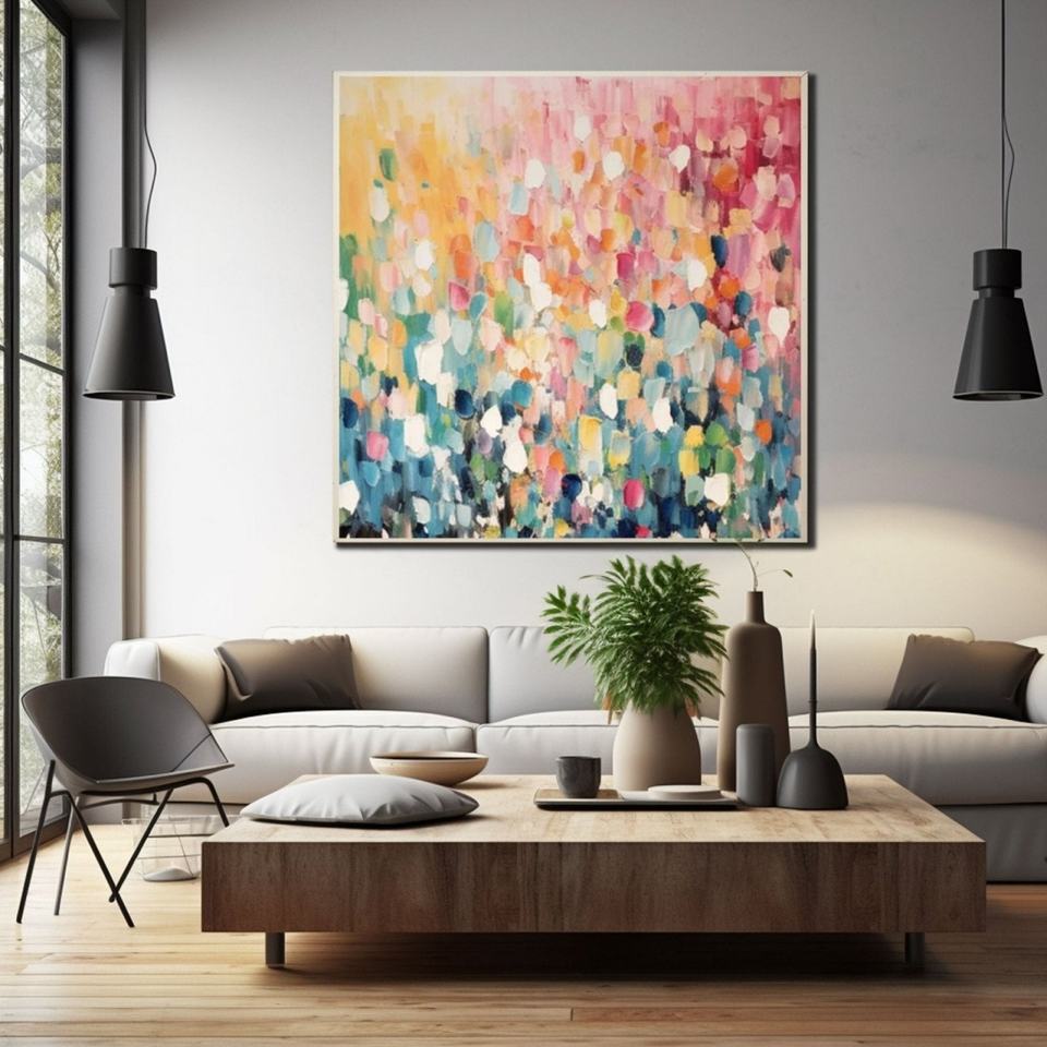 Peinture à l'huile abstraite minimaliste artisanale sur toile, art mural pour la décoration rétro moderne de la maison et du bureau