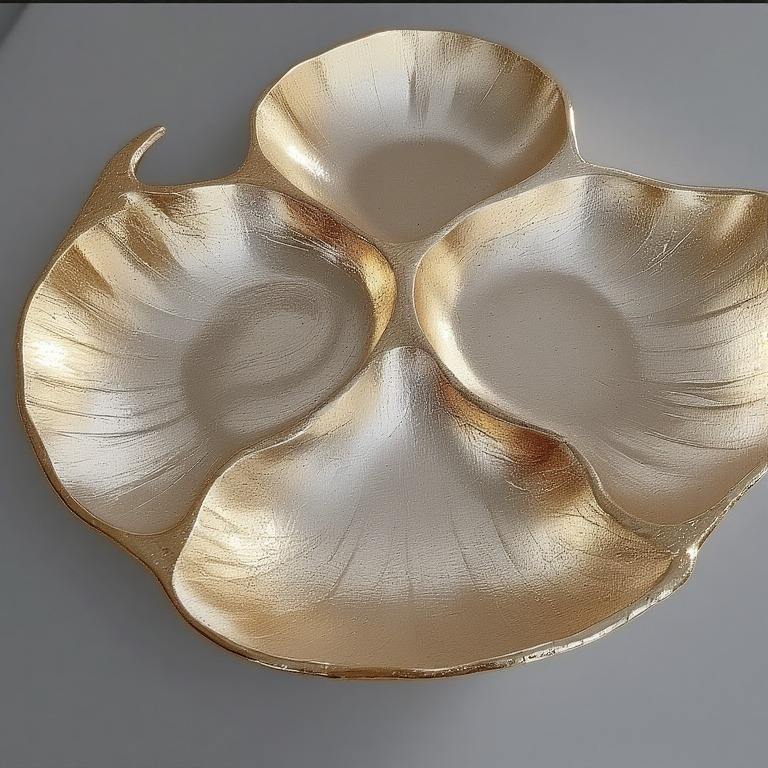 Serveur de fruits secs de luxe en verre d'aluminium fabriqué à la main avec trois compartiments finition or brillant conçu pour un dîner élégant