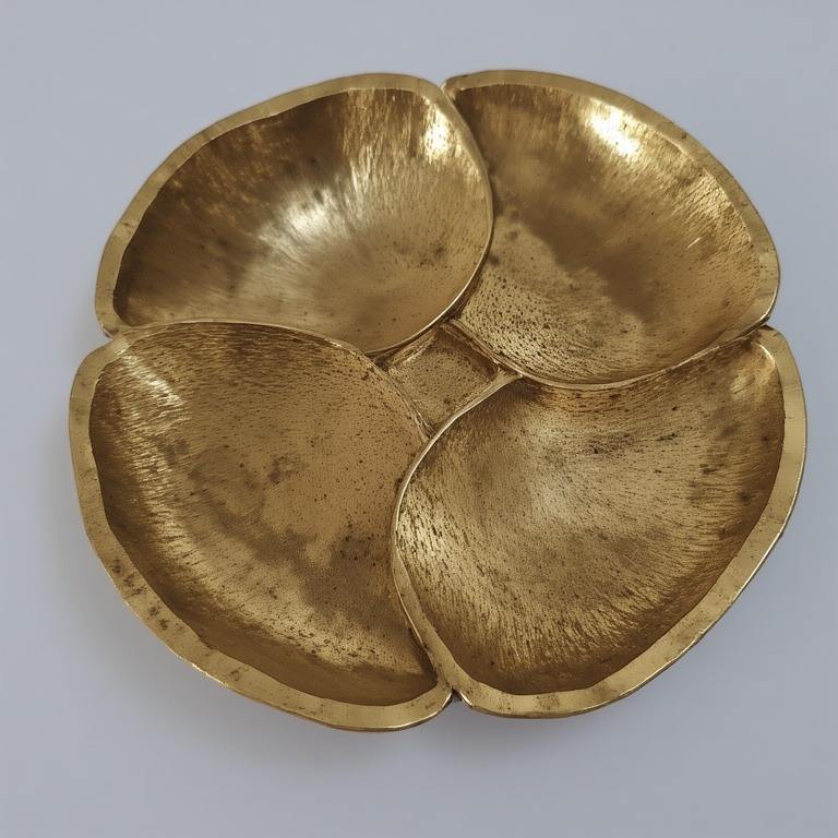 Serveur de fruits secs en aluminium fabriqué à la main avec trois compartiments de feuilles connectés en finition or conçu pour les repas décoratifs