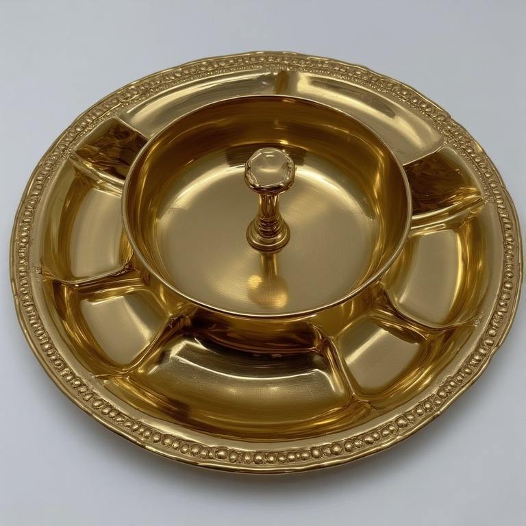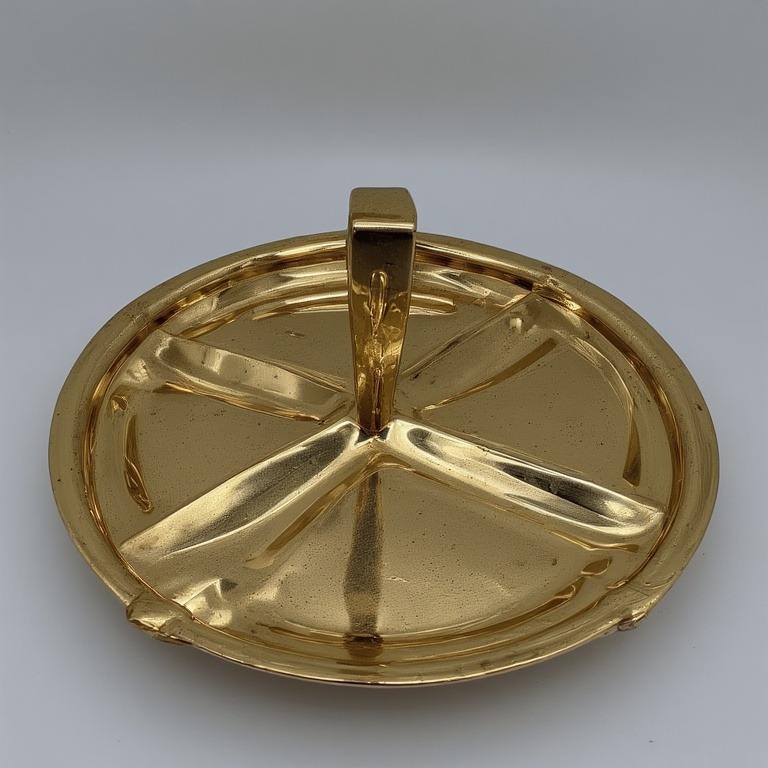 Serveur de fruits secs en aluminium fabriqué à la main avec trois bols connectés en forme de feuille en finition dorée parfait pour les repas