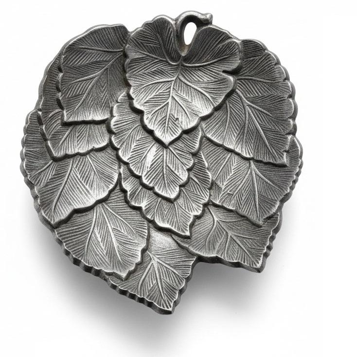 Plateau décoratif artisanal en aluminium, motif de feuilles, rond, motif floral, métal, décoration de table, décoration de la maison, décoration d'hôtel, décoration de restaurant