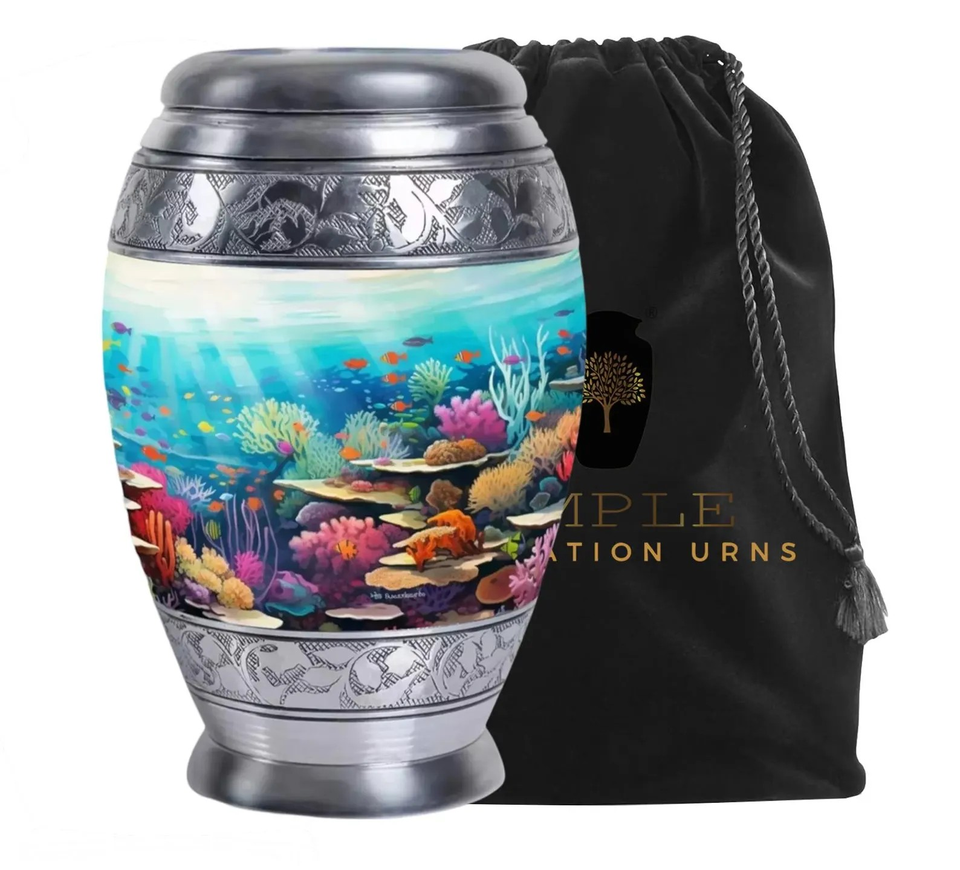 Urnes de crémation en aluminium fabriquées à la main Urnes de crémation de conception de poisson avec revêtement Meena Design étanche Souvenir 3 Cu et grand 220 Cu