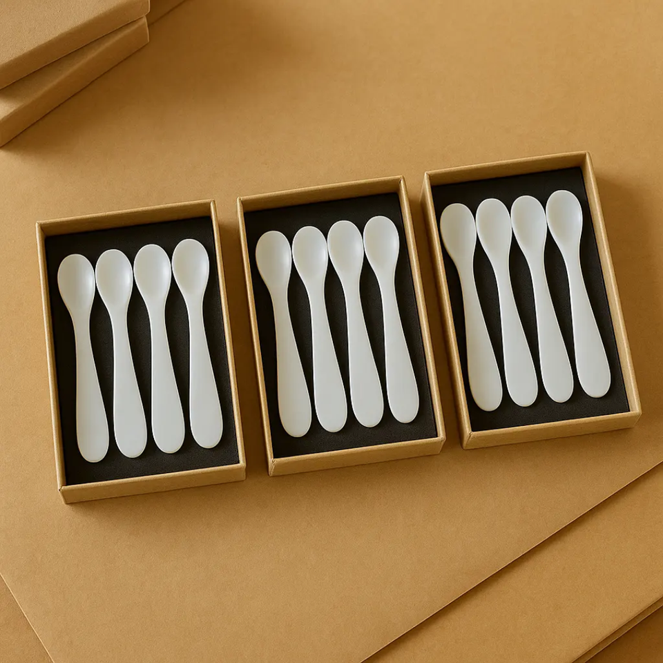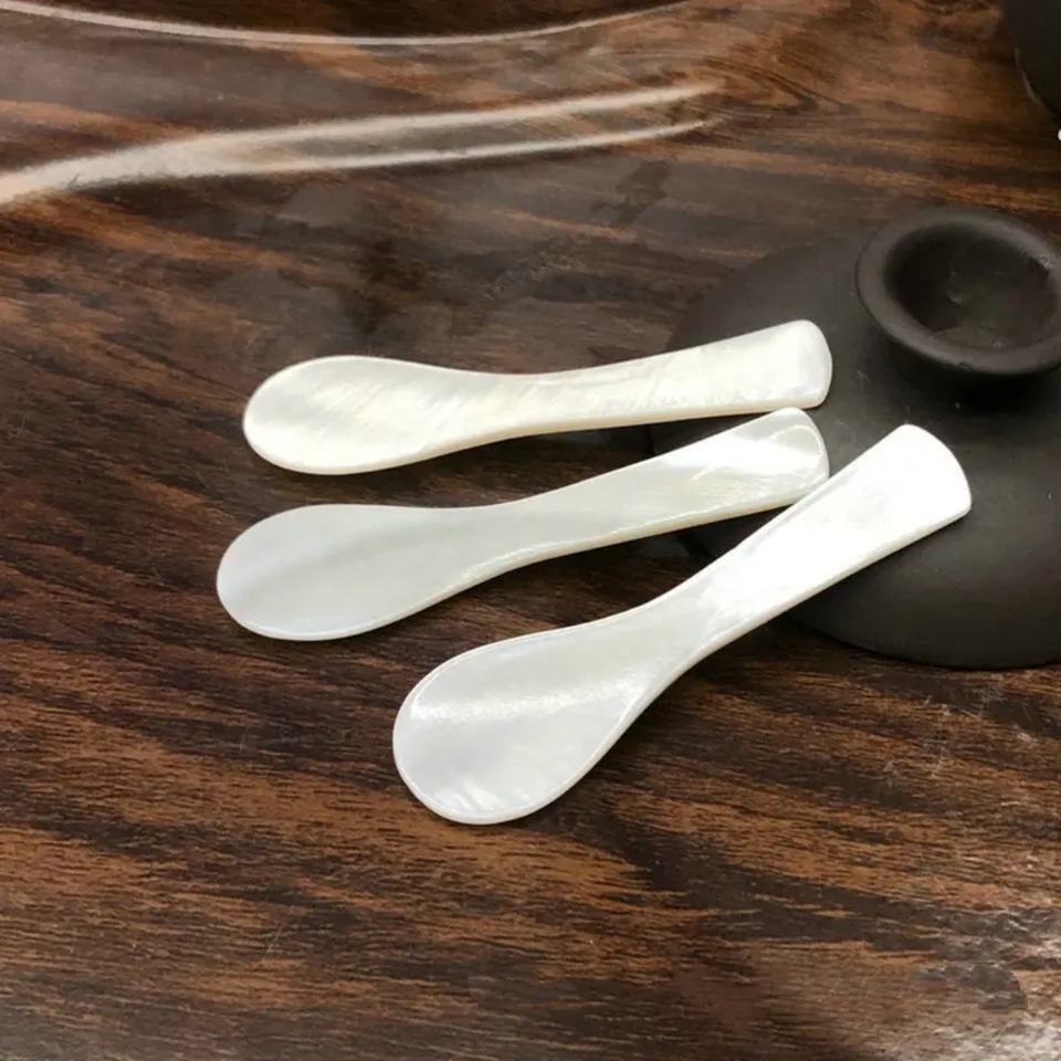 Cuillère à caviar en bambou artisanal écologique de 8 cm, coquille naturelle blanche, outil de luxe pour la salle à manger, pour les fêtes, artisanat DHT