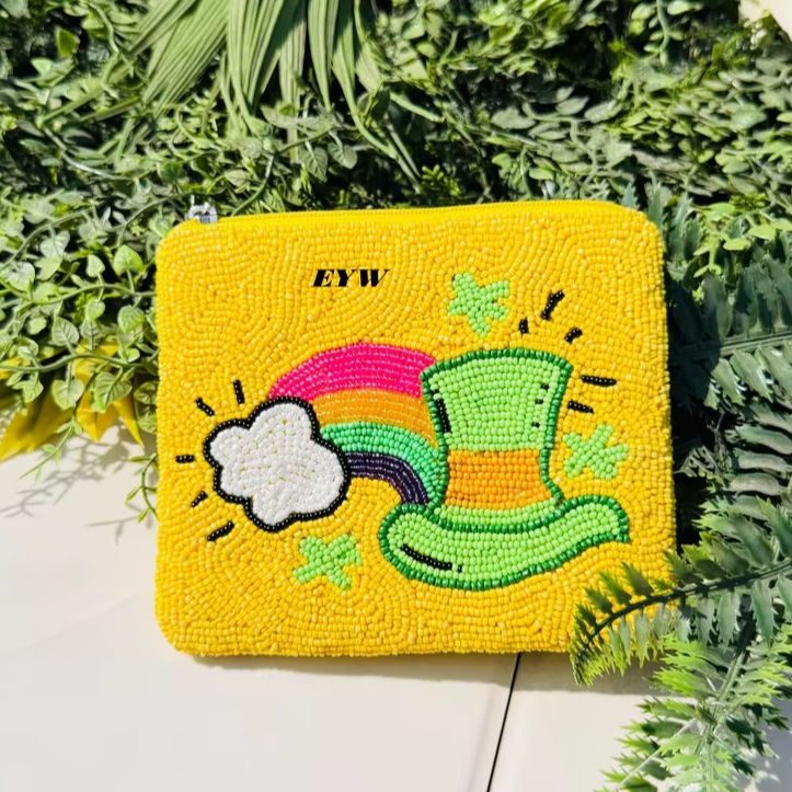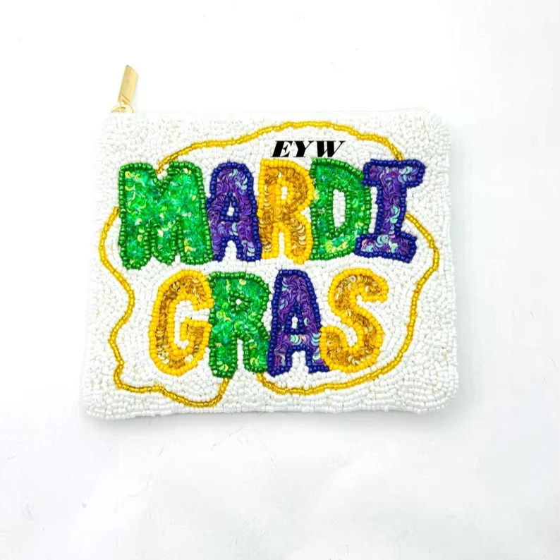 Pochette à monnaie perlée artisanale, faite main, créative, avec fermeture éclair, multicolore, sac de danse, motif nœud, pochette à perles de cristal