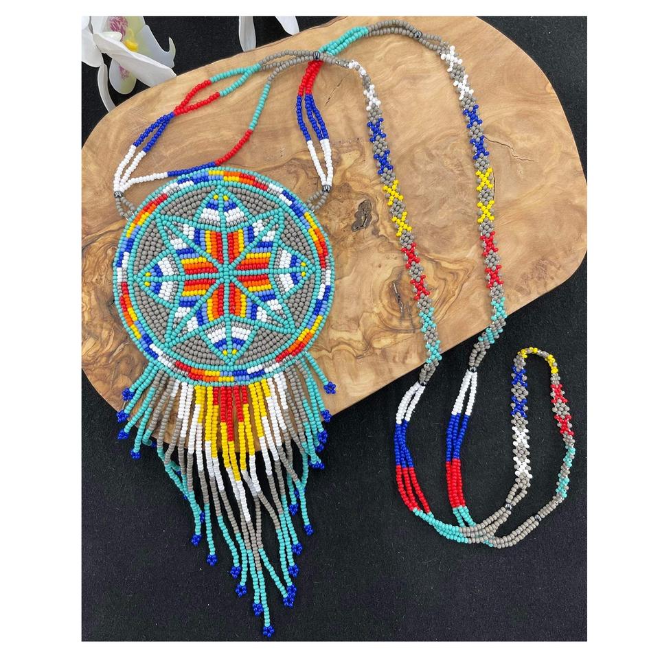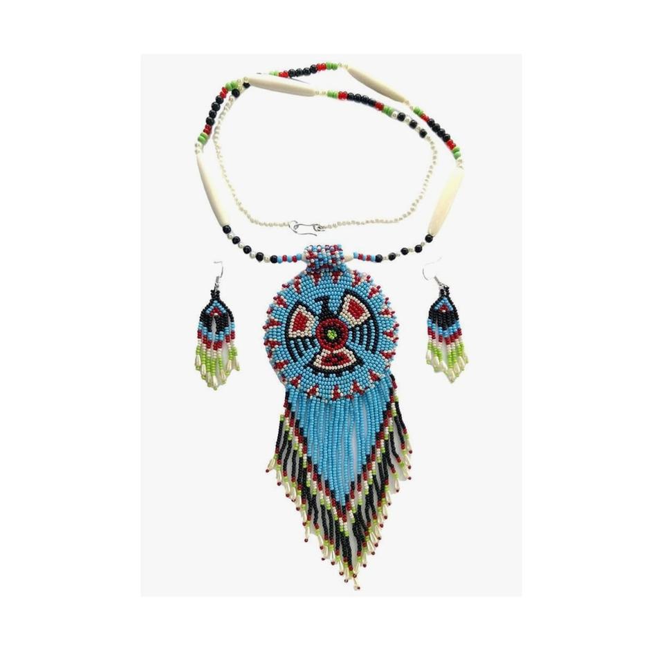 Ensemble collier et boucles d'oreilles en perles artisanales, fabriqué avec des matériaux de haute qualité pour une utilisation durable.