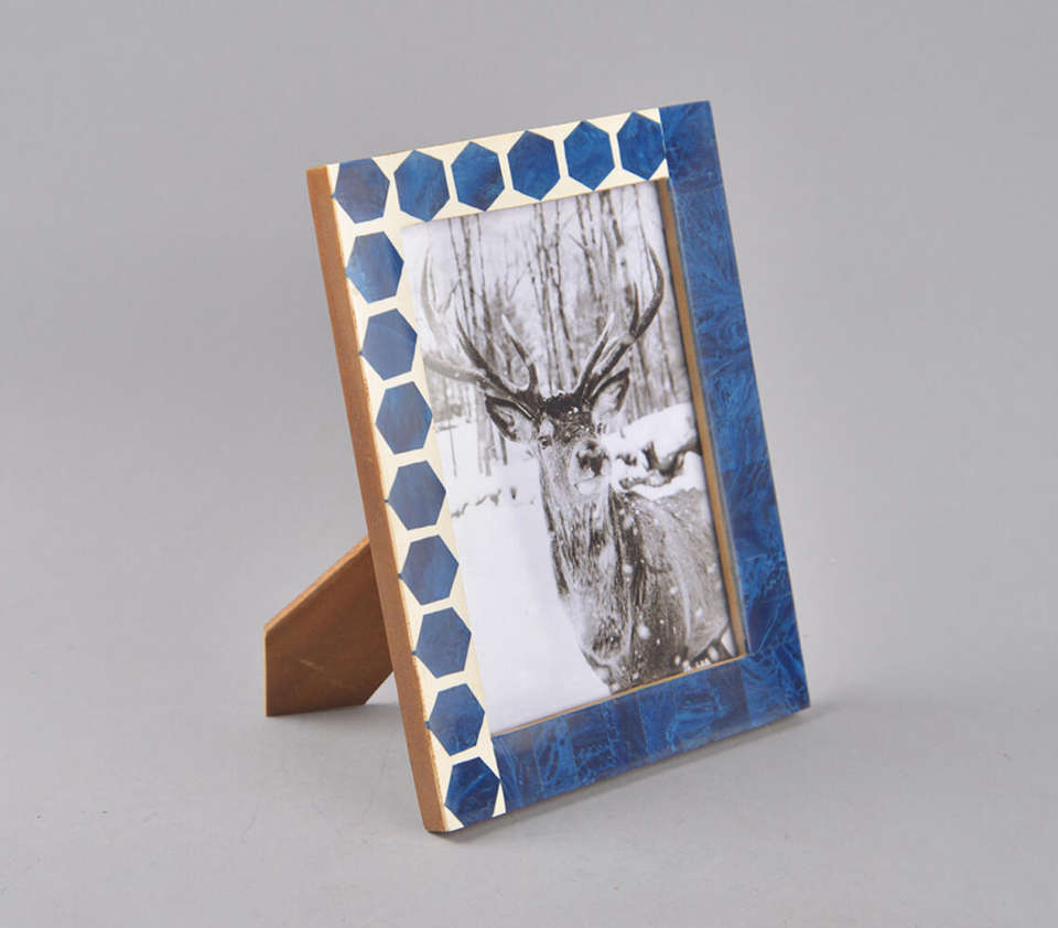 Cadre photo en résine à motif hexagonal bleu fait à la main, élégant, texturé, bleu marine, porte-photo décoratif pour bureau