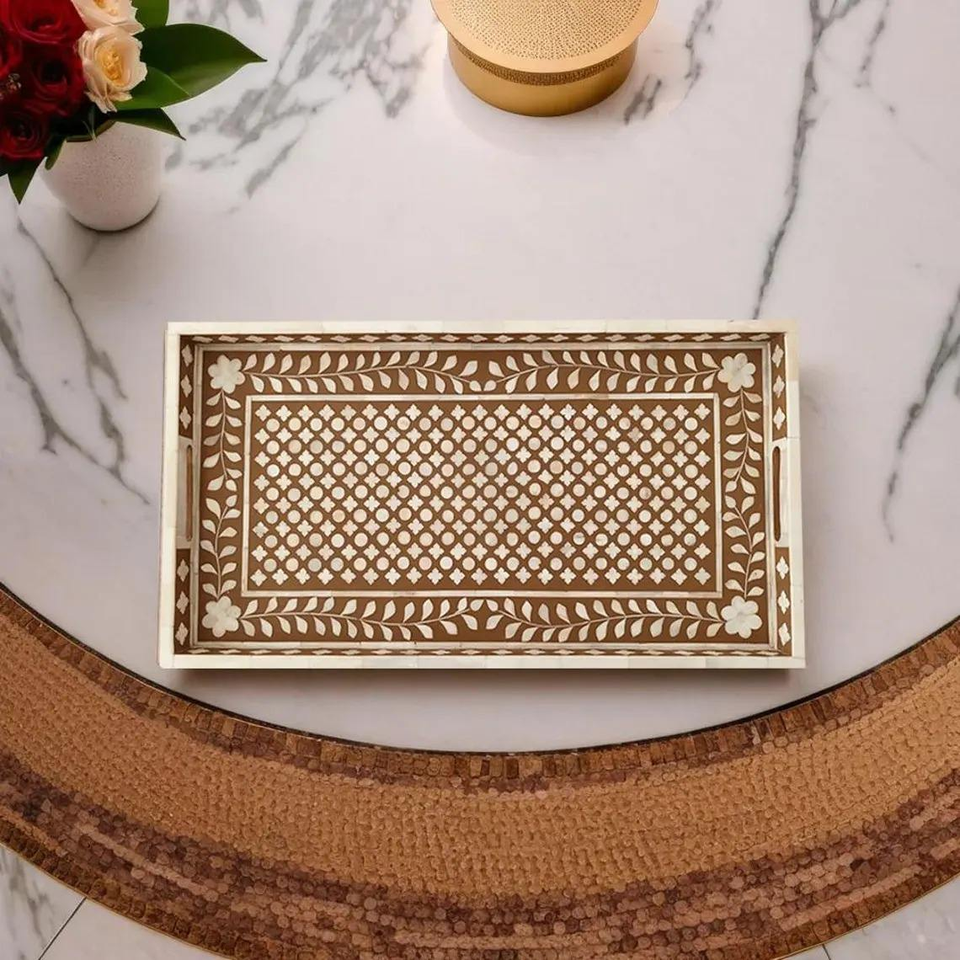 Plateau de service moderne en os incrusté fait à la main pour la cuisine, la salle à manger, la salle de bain et la vaisselle - Passe au lave-vaisselle