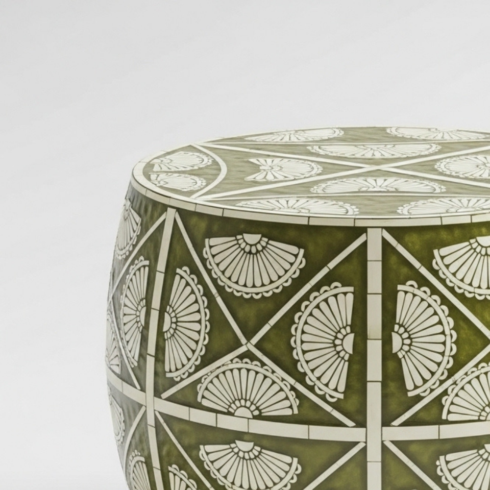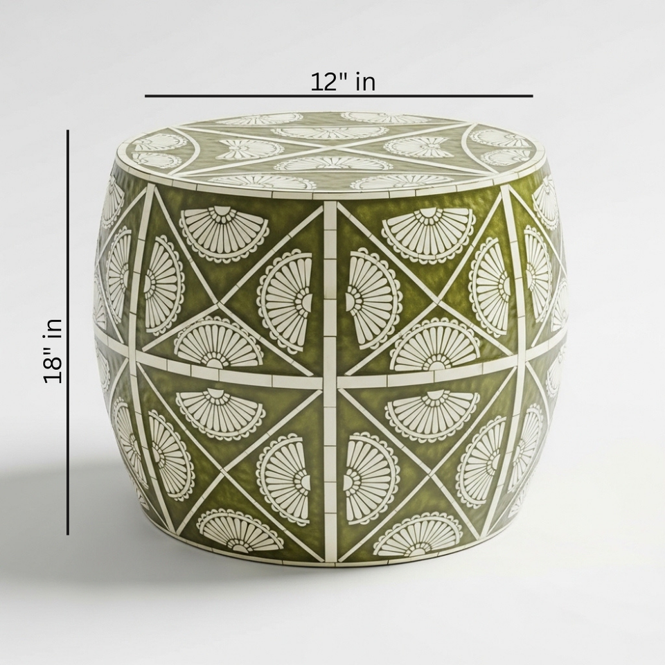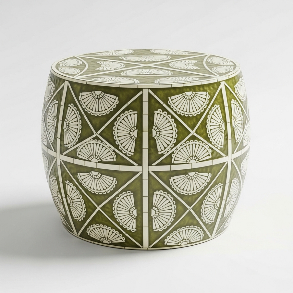 Table d'appoint ronde artisanale en os incrusté – Table d'appoint motif lotus ivoire, tabouret décoratif de luxe pour salon et chambre
